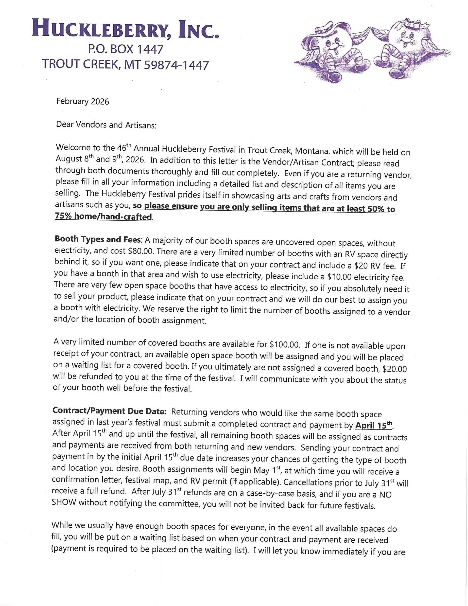 Please note that spaces are not guaranteed until both the application and payment IN FULL have been received, and your space confirmed. See the letter below for current fees.